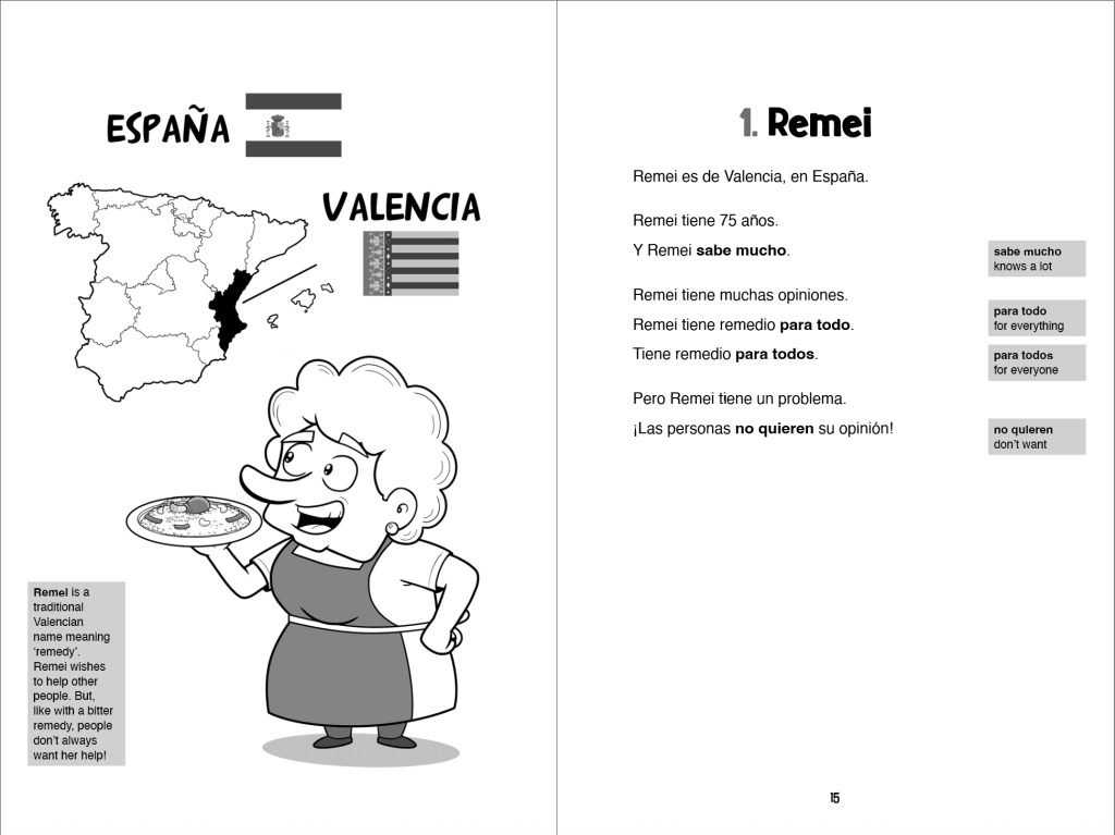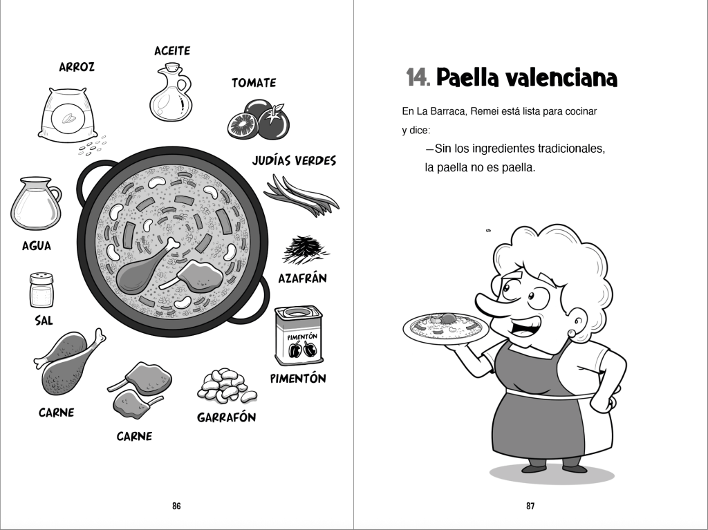 I have absolutely LOVED reading this book with my adult beginner Spanish students. It is so cleverly written and the language used is perfect for beginner learners. My students travel often to Spain, so it has been so fun for them to learn more about Valencia’s tradition of paella while gaining confidence by reading a fun story in Spanish. My students now email me when they come across “arroz con cosas” at restaurants! 🙂 As an instructor, I have used this book with absolute beginners. I think that any level 1 instructor could easily incorporate this into their curriculum